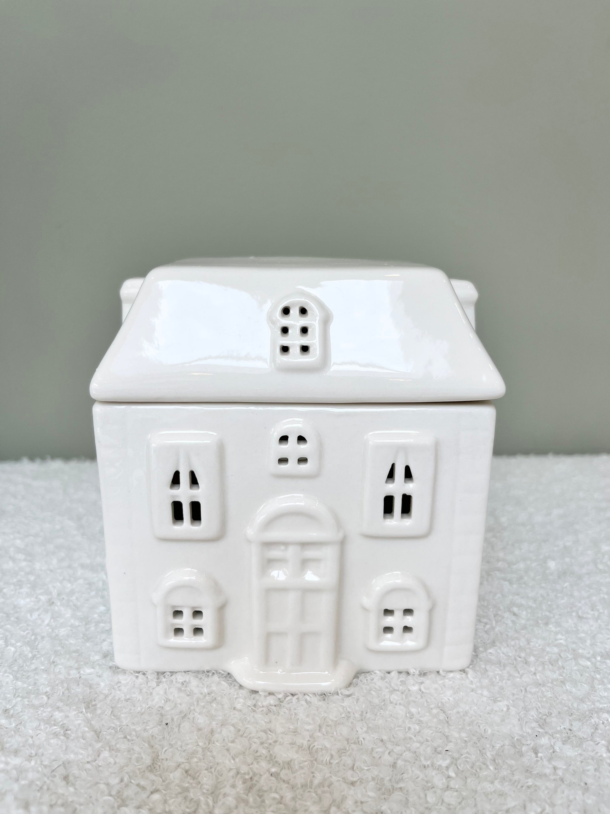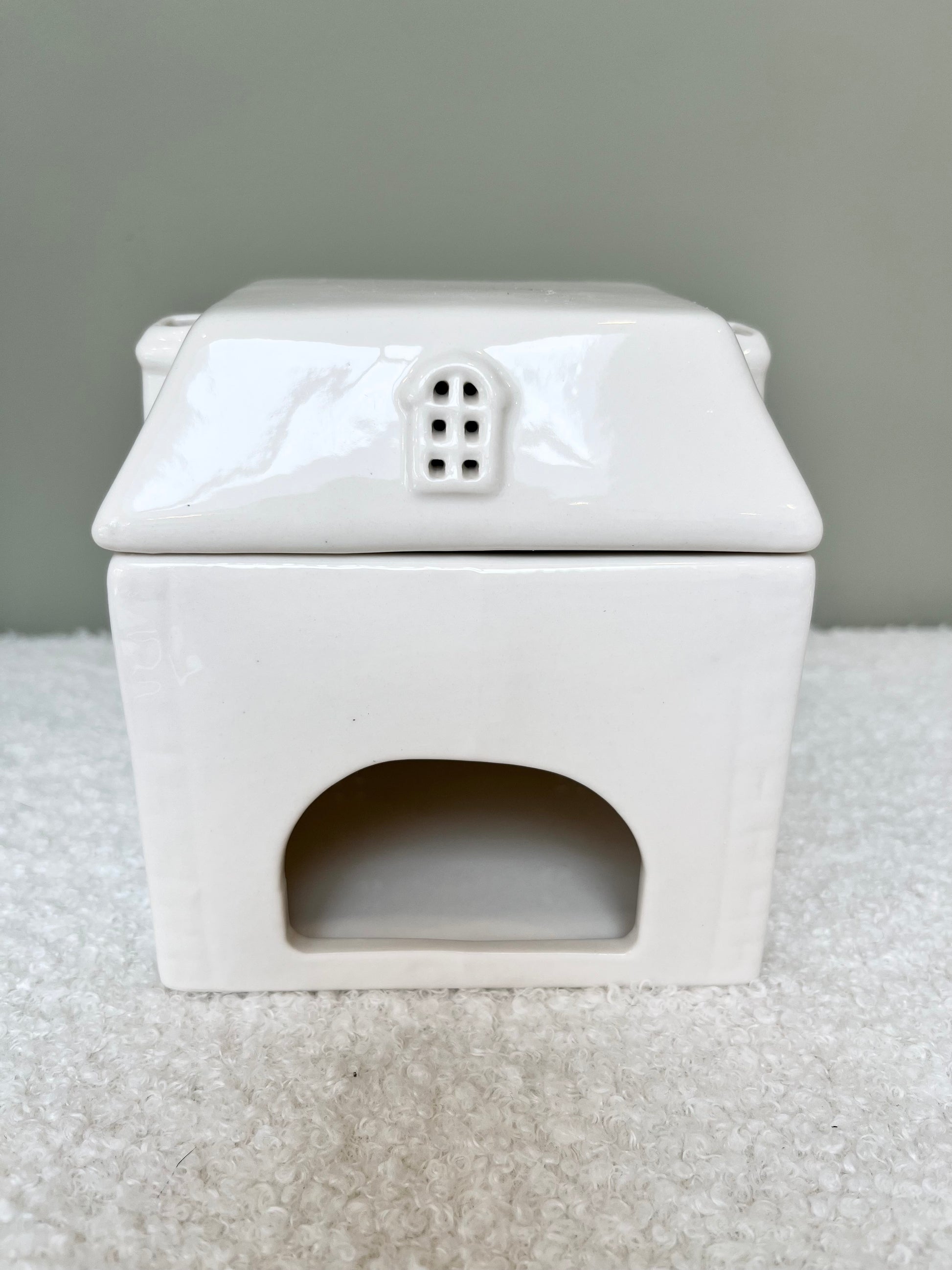 This adorable, ceramic house oil and wax warmer/burner is sure to delight this season. Simply place a lit tealight inside, remove the lid, add fragrance oil to the bowl and wait for the calming scent to fill the air. Recommended for use with fragrance oil diluted with water. Always remove the lid whilst in use.